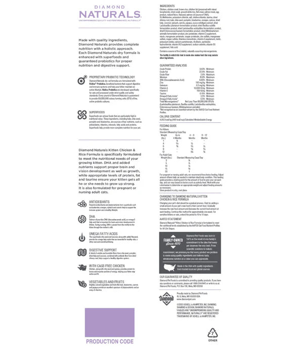 Diamond Naturals - cat Indoor Kitten & Nursing Mother Cat Food with Chicken 3kg
