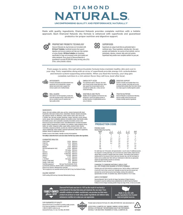 Diamond Naturals - dog Skin & Coat, For Medium and Large Breeds, All Life Stages Dry Dog Food, With Salmon - 2Kg, 15Kg