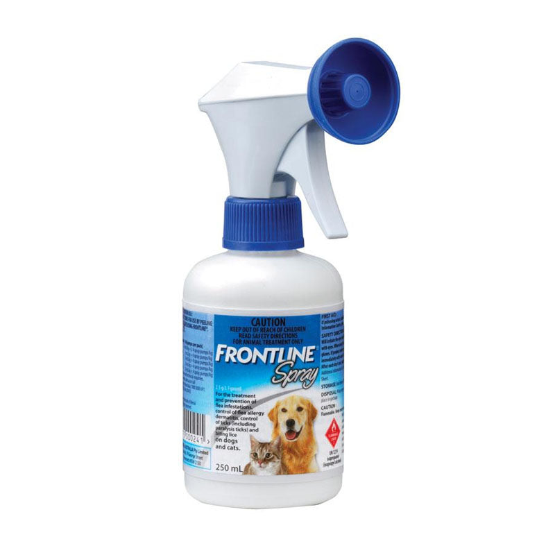FRONTLINE SPRAY protects cats and dogs against fleas and ticks, including paralysis ticks. It can be used on puppies and kittens from 2 days of age.