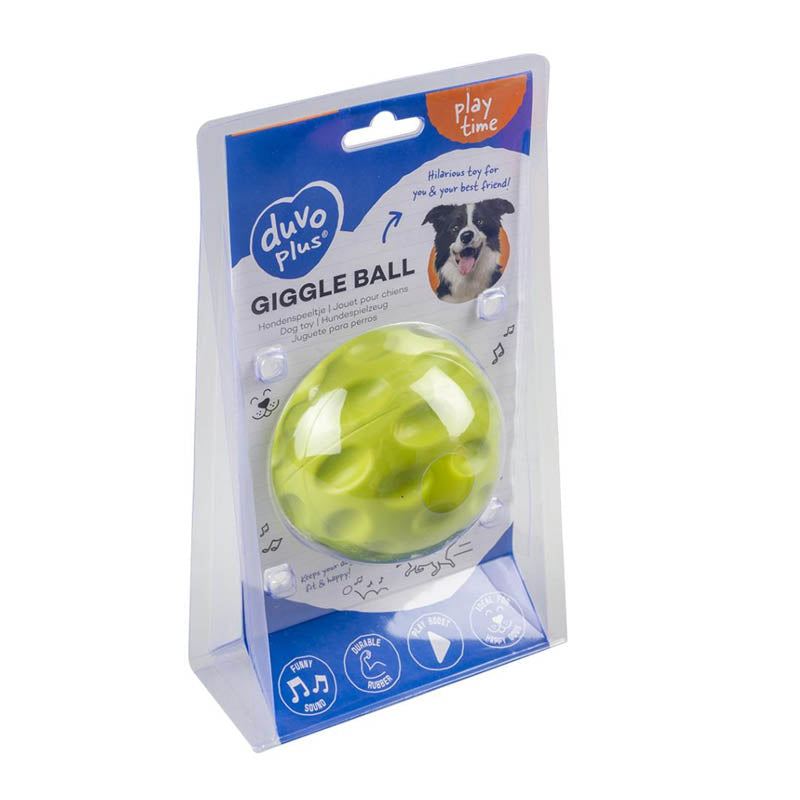 The Giggle ball from duvoplus is a giggling toy for dogs. ... The ball is made in durable rubber, the ideal interactive toy for your four-legged friend.