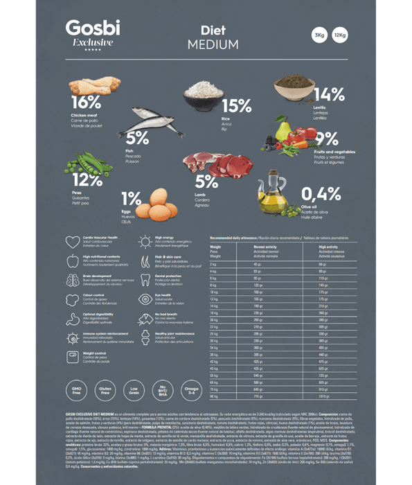 - Complete Gourmet Dry Food for Medium Sized Dogs: Packed with Gosbi's vitamin-rich "Provital Formula" with reduced calories to maintain optimal weight.