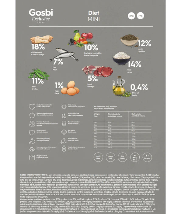 Support healthy weight management with Gosbi Exclusive Hypoallergenic Adult Mini Diet With Chicken, specially designed for Adult Mini and Small breed dogs with weight concerns.