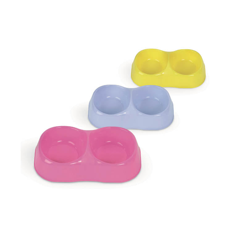 Maya double bowl in nice fresh colors for fashionable pets. For cats and small dogs