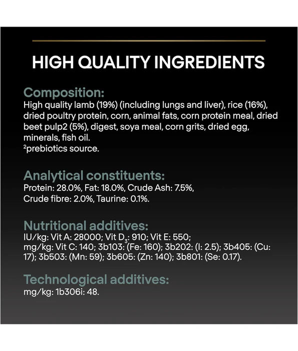 Purina Pro Plan Large Athletic Adult Sensitive Digestion – Rich in Lamb is a complete, high-protein dry food tailored for large breed athletic dogs with sensitive digestion. Developed by veterinarians and nutritionists, this recipe combines science-backed nutrition, prebiotics, and easily digestible ingredients to optimize gut health, nutrient absorption, and joint strength for an active lifestyle.