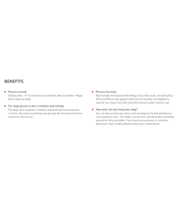 - Proven Results: 91 % of owners reported improved skin and coat condition after 2 months* (*Royal Canin internal study).